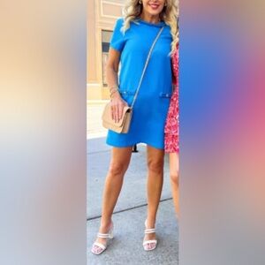 Avara Dotty Blue Pocket Detail Retro Mod Dress Small S