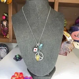 Claire's Silver peace ☮️ Necklace with Multicolor Charms