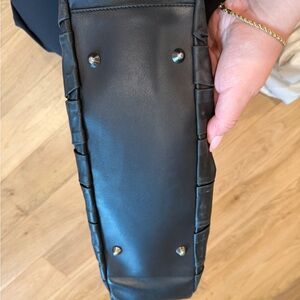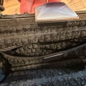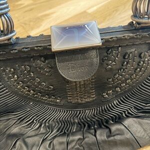 Authentic Christian Dior black leather bag with silver accents. Intricate detailing. Perfect for stylish outings.