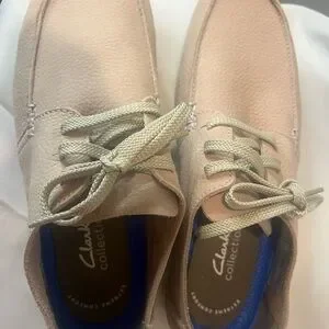 Clarks Tan Leather Loafers Slip-Ons with Moc-Toe Design