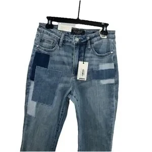 NWT Judy Blue High Waist Patchwork Boyfriend Jeans 7/28 Blue Stretch 88499 Boho