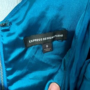 Chic mini dress with a draped teal bodice. Fitted navy skirt adds elegance. Perfect for a night out. Never worn!