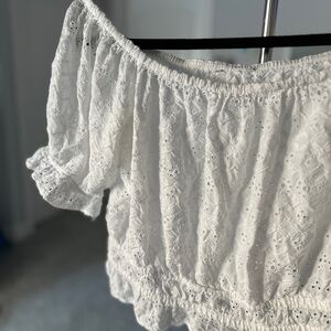 American Eagle Outfitters White Eyelet Off-Shoulder Blouse
