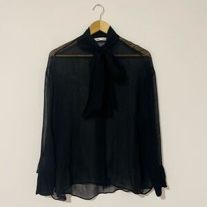 Zara - Sheer Chiffon Tie Neck Blouse Size M Black
