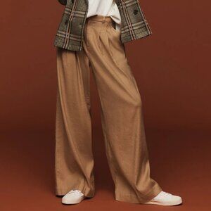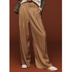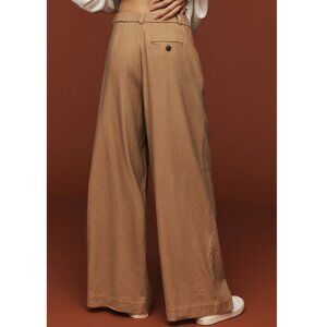 Anthropologie Maeve Avery Pleated Wide-Leg Trousers Linen Edition Khaki Large