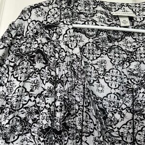 Ava & Viv Covered Button Black and White Patterned Blouse 3/4 Sleeve