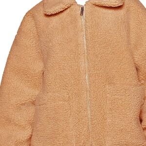 Stay cozy and stylish with this tan sherpa jacket. Perfect for layering in cooler weather.