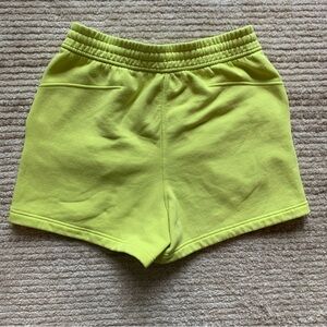 Neon yellow fleece shorts with drawstring waistband.