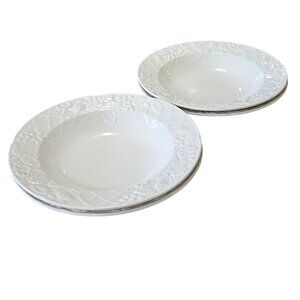 4 Mikasa English Countryside Soup Bowls 9" white embossed dishwasher microwave