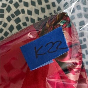 Dark navy blue floral satin robe with striking red and green accents. Ideal for stylish lounging. No flaws to note. Please zoom in on photos for condition and details.