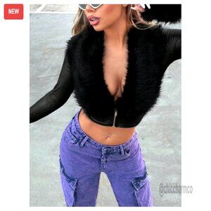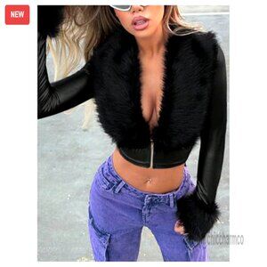 Brand new with tags and in flawless condition — this chic PU leather cropped jacket with faux fur trim delivers a bold, Y2K-inspired look perfect for making a statement on nights out, at concerts, or during festive occasions. The fit is slim and flattering, with a soft, comfortable fabric that offers a slight stretch.