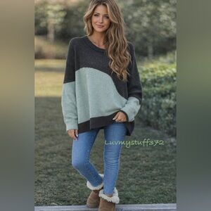 Cute OAK + FORT Dark Gray and Light Green Crew Sweater