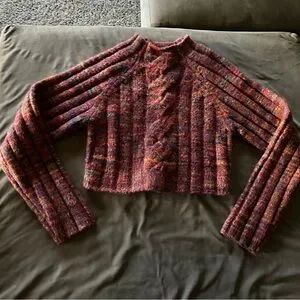 For Love And Lemons Colorful Rainbow Winter Fall Cropped Knit Sweater Size Small