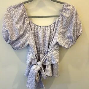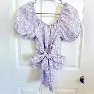 Altar'd State Lavender Lilac Floral Puff Sleeve Blouse Top