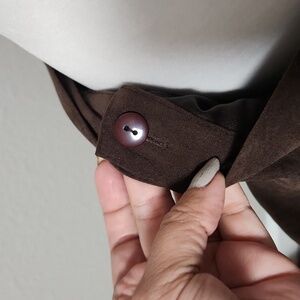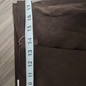 Fabric kind of looks like suede, wrap skirt with D ring buckle.