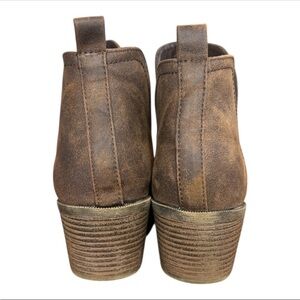 Elegant lipton brown microsuede chelsea ankle boot with a stylish block heel. Perfect for versatile wear. Size 9 1/2