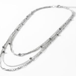 AND NOW THIS Silver Plated Layered Chain Necklace 18” Adjustable New