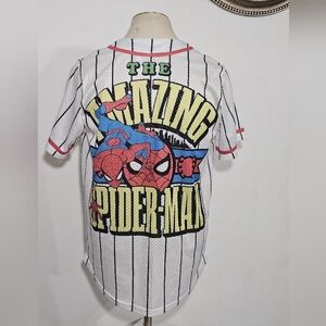 Embrace your love for Spider-Man with this stylish white shirt featuring bold black stripes and red accents. Perfect for casual outings or fan events.