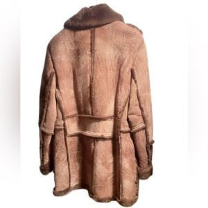 Vintage Brown leather Shearling style Slim Fit 2 pocket long sleeve Coat 44