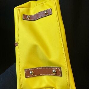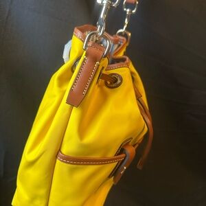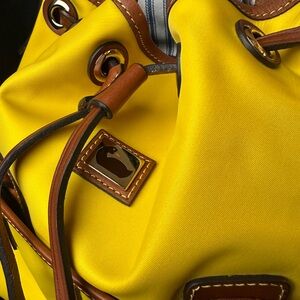 NWOT Dooney & Bourke Mustard Yellow Leather Trim Bucket Bag Purse
