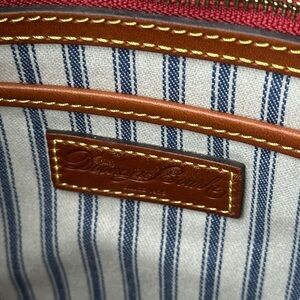 - Nylon and leather exterior, fabric lining