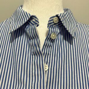 This charming blue and white mini sundress from J. Crew Factory features a playful puff sleeve design and a classic polo collar. Perfect for casual outings or work, its light cotton fabric ensures comfort and style in warm weather.