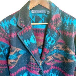 VTG Southwestern Navajo Aztec Wool Blend Jacket Blazer Short Teal Brown Black L
