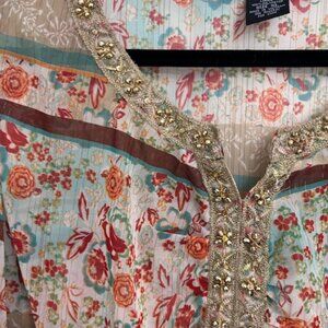 Pierre Cardin Tunic Sequin Top Sheer Floral Design Size XL