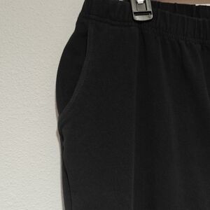 LL Bean High Waisted Pants Medium Petite Black Pockets Boxy Cozy 90% Cotton