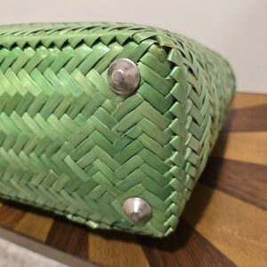 Good pre-owned vintage condition. Item shows some wear. Minor fading off the green color wicker. Small stain on inside lining (see pic).;Please see all photos closely for overall condition.