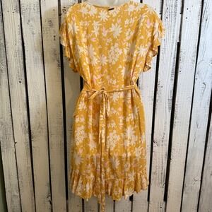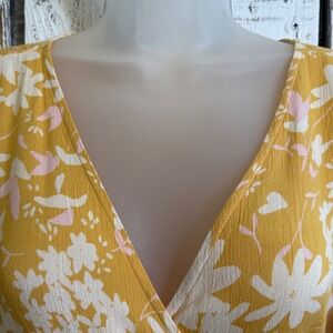 Keywords: Billabong, dress, wrap dress, floral dress, yellow dress, ruffle dress, short sleeve dress, womens dress, medium, M, casual dress, boho dress, summer