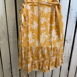 Billabong Floral Print Wrap Dress Yellow Ruffle Womens Medium Fairy Cottage Boho