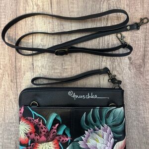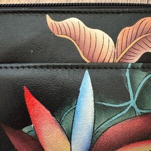 Anuschka Hand Painted Leather Crossbody Clutch Floral Tropical Boho Art