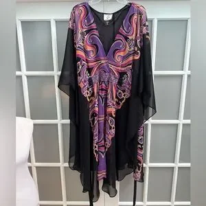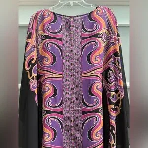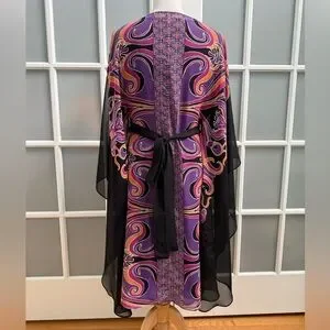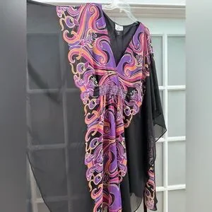 VTG I.C.E. Boho Black Dress & Kaftan Resort Evening Cover Up Set 2pc Size 18W