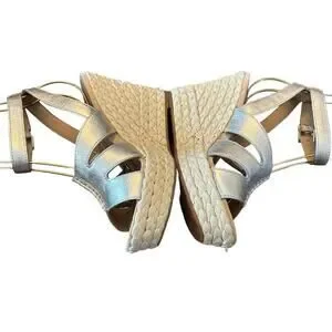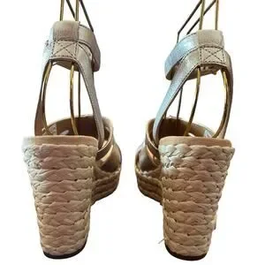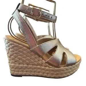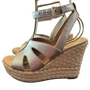 Ugg Careena Gold Metallic Leather Wedge Espadrilles Sandals Ankle Strap NEW 6.5