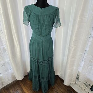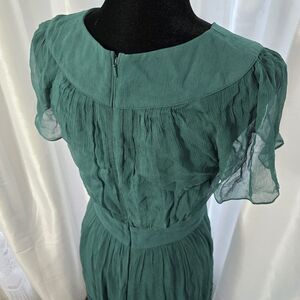 Boden Trim Detail Maxi Dress. Deep Forest Green color. Breezy, lightweight, flowy material. Sheer flutter sleeve. Zipper closure.