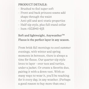 Lands' End Women’s Quarter Zip Fleece in dark burgundy. Comfortable, warm, ideal for layering. Easy care. Very gently worn. Like new. L/T size