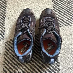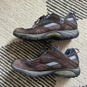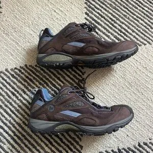 merrelll siren sync hiking shoes! super cute “ugly shoe” in a perfect brown and blue colorway! outfit inspo at the end. size 8 but fit more like 7.5