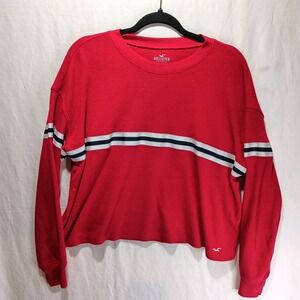 Hollister Boyfriend Tee Women's Thermal Long Sleeve Crew Neck Shirt Red Sz M