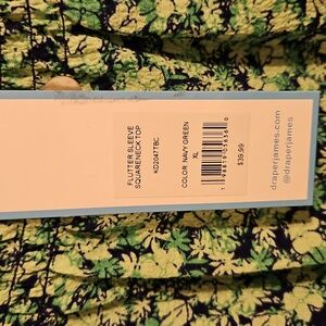 Draper James Green and Navy square neck flutter Sleeve blouse. NWT. 97% polyester and 3% spandex. Pit to pit is 24 and Length is 25 inches. Retails 40