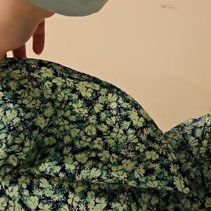 Draper James Green and Navy Square Neck Flutter Sleeve Blouse. NWT