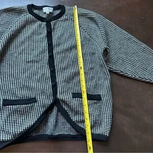 100% wool vintage cardigan- black and white houndstooth- jaeger- small