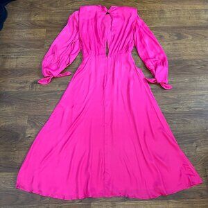 Farm Rio satin midi dress in hot Barbie pink