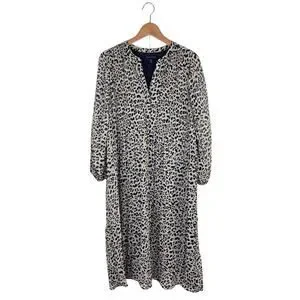 Cheetah print, pullover styling, long sheer sleeves with button cuffs, split v-neck, pleated lightweight fabric, lined, size XSP.