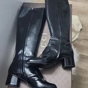 GUCCI LILIAN EUC KNEE HIGH BLACK BOOTS WORN 1X SIZE 38.5 IN BOX