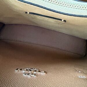 Ciute and chic Coach Mollie 25 tote bag purse handbag crossbody in chalk leather with unbranded chain charm. In very good preloved condition!