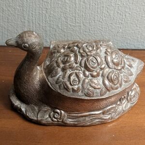 Elegant silver swan jewelry box featuring a vibrant red interior. Perfect for adding a touch of sophistication to your home decor.