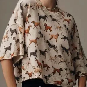 Anthropologie The Goldie Crew-Neck Cashmere Sweater Dog Dogs Size S NWT Puppies