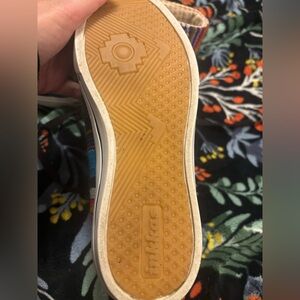 Vibrant high-top sneakers with multicolor stripes. Features comfortable fit and stylish design. Perfect for casual outings. Light wear on the bottom and white part of the shoes as pictured. Handmade in Peru so every shoe is unique. Can fit a man’s size 5.