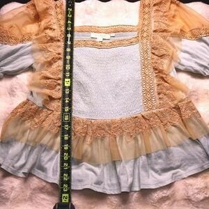 Anthropologie Ruffled Lace Mesh Layered Peplum Short Sleeve Top, Small, Lilac